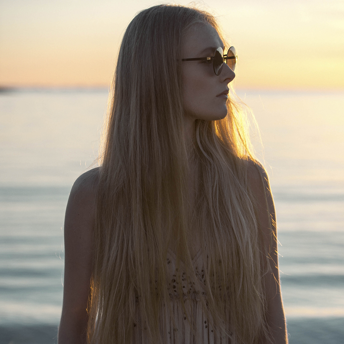 Studio 44 har i årevis samarbeidet med Seland Optikk. Alt av materiell og kommunikasjon i form av bilder og tekst kommer fra vårt studio. Bilde viser en av årets solbrillemodeller fra Moscot. Fotografert i solnedgangen på Vigdel. Modell er Ingrid. Fotograf og stylist er Anita Hamremoen.